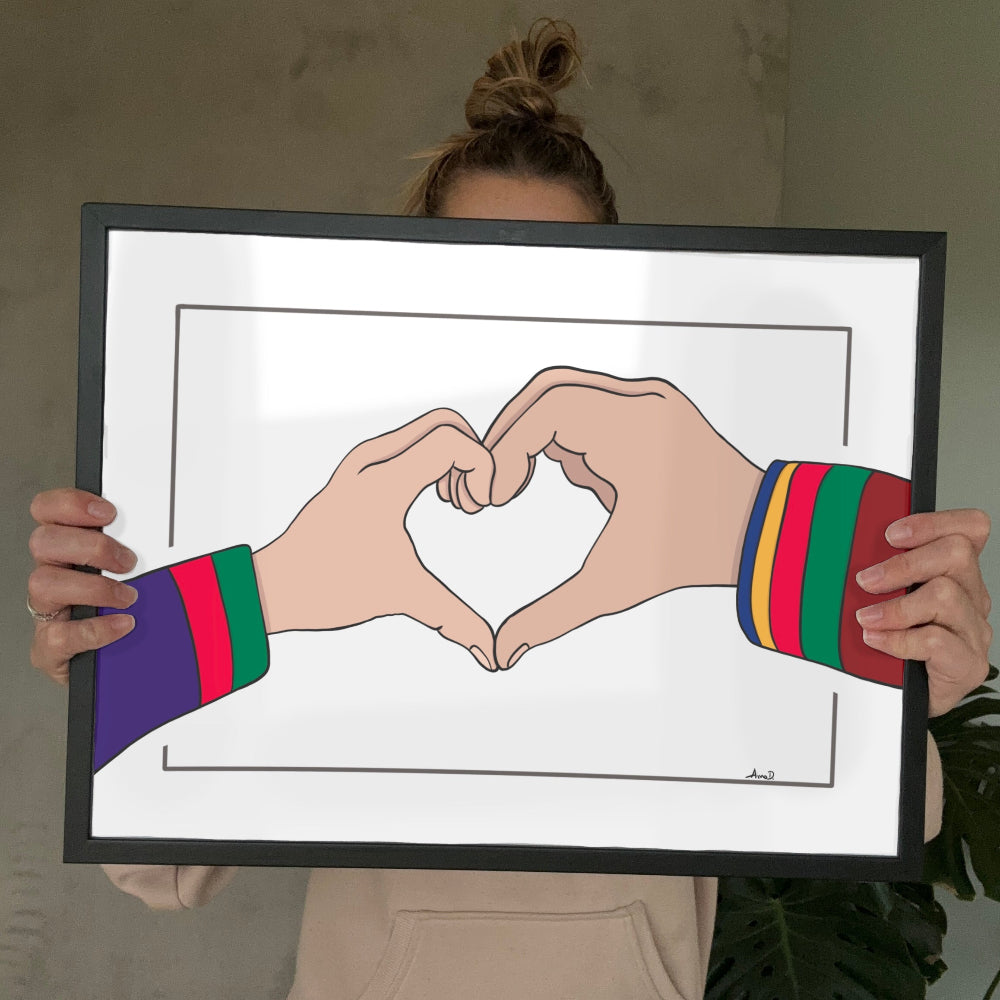 Bildet til et par, som kan tilpasses helt etter ønske. Bestem selv hvordan hendene skal holde, ermer, størrelse og farge på hendene, ringer, neglelakk, og annet som gjør bildet personlig.